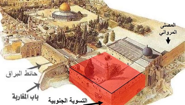 الموضوع يدور حول تسويةٍ “Basement” تقع في المساحات الداخلية في المسجد #الأقصى نفسه، وتشبه المصلى المرواني تماماً، وهي تقع داخل المسجد الأقصى بين الجامع القبلي والمتحف الإسلامي في الجهة الجنوبية الغربية للمسجد الأقصى. بمعنى أن الكلام يدور عن تسويةٍ يمكن أن تكون مصلى يشبه المصلى المرواني تماماً، تعمل سلطات الاحتلال على تهيئتها وتجهيزها فيما يبدو لتصبح ملائمةً للصلاة، بحيث تفاجئنا سلطات الاحتلال بفتح ثغرةٍ في السور الجنوبي الغربي للأقصى تنفذ إلى هذه التسوية بعد أن أتمت تجهيزها للصلاة، وتتحول هذه التسوية فجأةً إلى كنيسٍ داخل المسجد الأقصى مقابل المصلى المرواني وبمحاذاته تماماً من الجهة المقابلة.