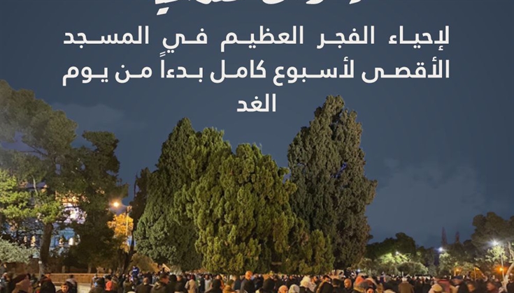 ودعا نشطاء مقدسيون لأداء صلاة الفجر في المسجد الأقصى ضمن حملة (الفجر العظيم) في باحات المسجد الأقصى لصد عدوان المستوطنين، بدءا من اليوم الثلاثاء.