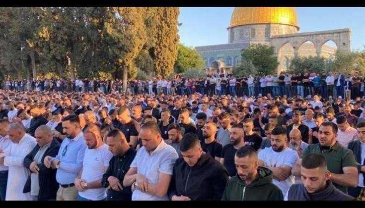 وقالت مصادر مقدسية إن 50 ألف مصل من القدس والداخل المحتل ومن تمكن من الوصول للمسجد من أهل الضفة أدوا الصلاة في باحاته ومصلياته المسقوفة.