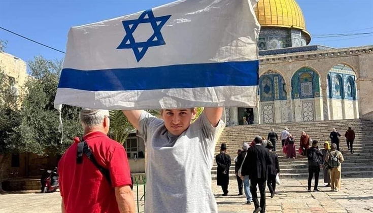مستوطن يرفع علم الاحتلال خلال اقتحام المسجد الأقصى