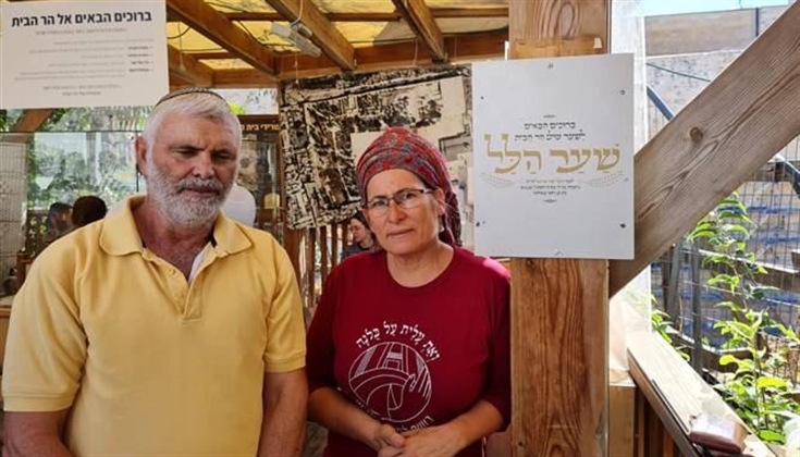 والدا المستوطنة التي قتلت في الخليل قبل 5 سنوات (هيليل أرئيل)، يستغلان الأحداث التي تجري حالياً في المسجد الأقصى ويعيدان تركيب لوحة عند مدخل باب المغاربة تحاول تغيير اسم الباب إلى (باب هيليل) بعد إزالتها سابقاً.