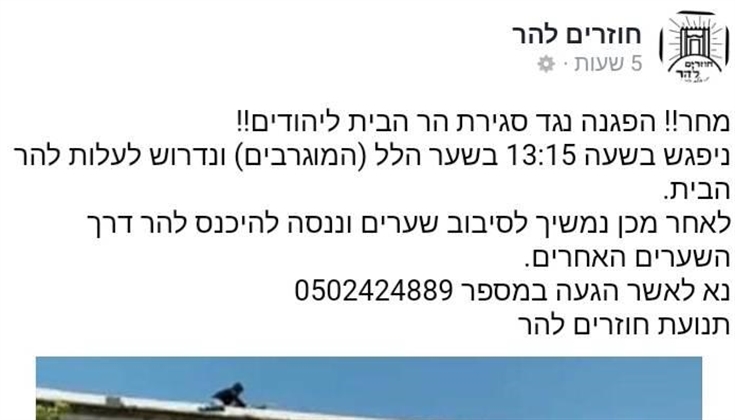 دعت جماعة العودة الى جبل الهيكل لتنظيم مظاهرة يوم غد الثلاثاء في تمام الساعة ١٣:١٥ عند باب المغاربة للمطالبة بفتح الاقصى للاقتحامات خلال عيد الأضحى المبارك، وستقوم الجماعة المتطرفة بالسير نحو بوابات الاقصى ومحاولة اقتحامه من أي باب آخر