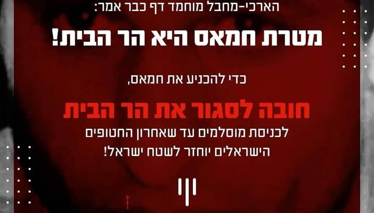 ونشرت الجماعة المتطرفة التي تنشط في تنفيذ اقتحامات #الأقصى يومياً إعلاناً قالت فيه: "لابد من إغلاق جبل الهيكل تماماً في وجه المسلمين حتى يعود آخر مختطف إسرائيلي إلى إسرائيل".