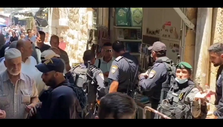 قوات الاحتلال تنكل بشاب أثناء دخوله الى المسجد الأقصى وتمنعه من الدخول اليه قبل قليل