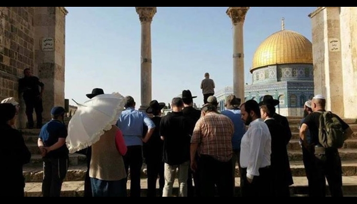 وأفاد شهود عيان، بأن عشرات المستوطنين اقتحموا الأقصى، من جهة باب المغاربة، ونفذوا جولات استفزازية في باحاته، وأدوا طقوسا تلمودية.