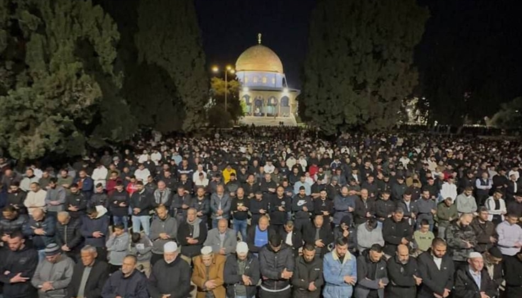 أدّى عشرات آلاف المصلين صلاتي العشاء وتراويح الثالث من رمضان في رحاب المسجد الأقصى المبارك، رغم التضييقات وحواجز الاحتلال الإسرائيلي.