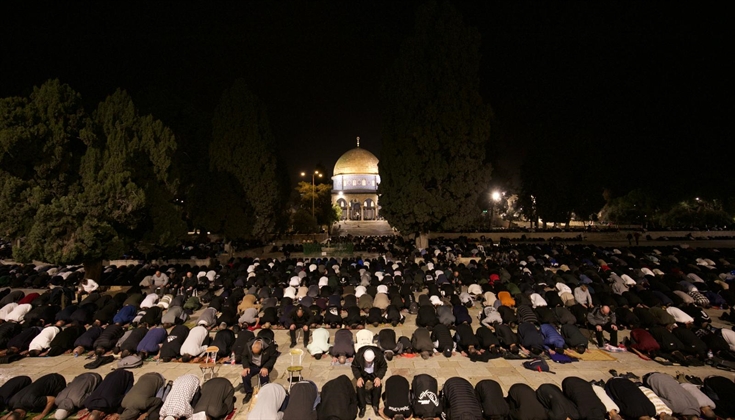 وقالت دائرة الأوقاف الإسلامية في القدس (تابعة للأردن)، إن "نحو 45 ألف فلسطيني أدوا صلاتي العشاء والتراويح في رحاب المسجد الأقصى، رغم إجراءات الاحتلال".