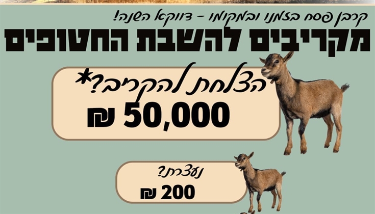 وأشارت إلى، أن المنظمة رفعت مكافآت المستوطنين هذا العام، لتصل إلى “50 ألف شكيل (نحو 13 ألف دولار) لمن يذبح القربان ويقدمه، و200 شكيل (نحو 30 دولارا) لمن يشارك في الذبح، و700 شيكل (نحو 185 دولارا) لمن يحضر مراسم الذبح، و2500 (نحو 660 دولار) لمن ينشر صورة أو فيديو للذبح على وسائل التواصل الاجتماعي”.