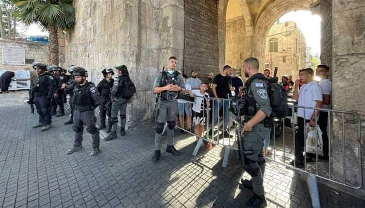 قوات الاحتلال تغلق باب الأسباط ، أحد أبواب المسجد الأقصى المبارك هذه اللحظات .