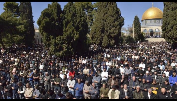 أدى عشرات آلاف الفلسطينيين صلاة الجمعة الأولى من شهر رمضان المبارك، في المسجد الأقصى المبارك وباحاته، رغم قيود الاحتلال الإسرائيلي المشددة على الوافدين إلى "الأقصى".
