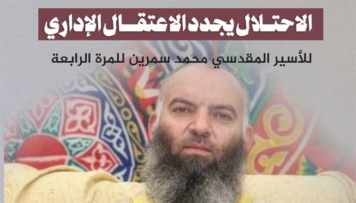 وأفادت مصادر حقوقية أنّ القرار يقضي بتمديد اعتقال الشيخ سمرين، وهو من أهالي بلدة سلوان جنوب المسجد الأقصى المبارك، لمدة 4 أشهر إضافية دون توجيه تهمة محددة له.